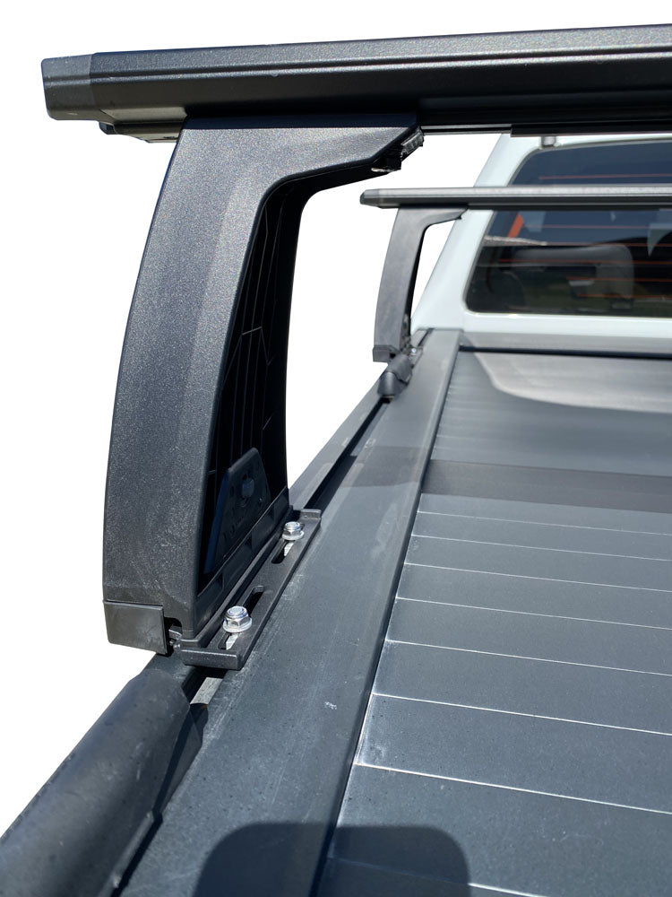 Use these adapters for mounting LockNLoad Gutter Mount legs to universal tracks. Contains components to mount one bar (two legs).