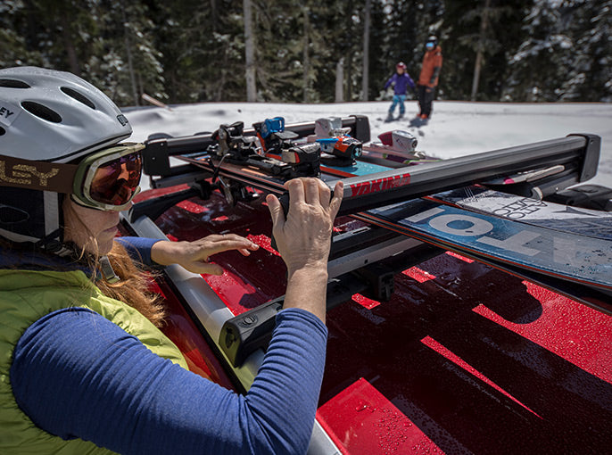 - Easily carries 6 sets of skis - up to 120mm wide at the tip - or 4 snowboards